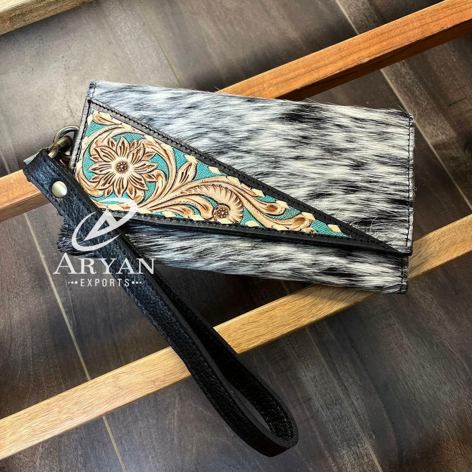 Hand Tooled Cowhide Leather Wristlet Wallet