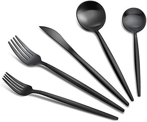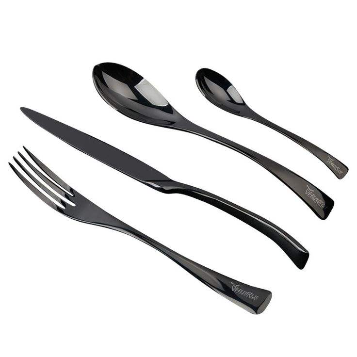 Ensemble de couverts en acier inoxydable de taille personnalisée élégant avec manche antique noir, couverts de cuisine, hôtels Inde