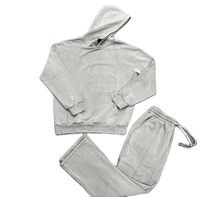 Ensemble sweat à capuche et pantalon de survêtement élégant et personnalisé pour l'hiver, vente en gros OEM, survêtement homme délavé à l'acide 100% coton molletonné