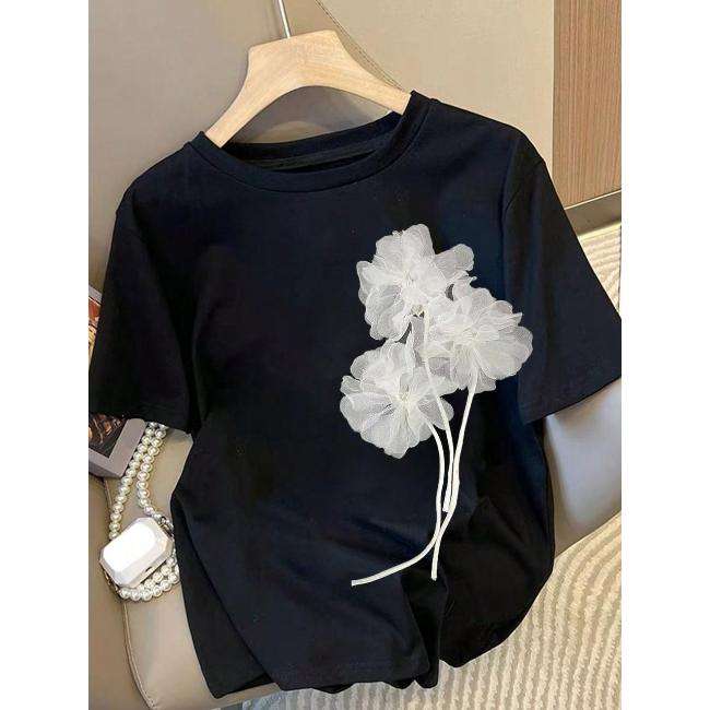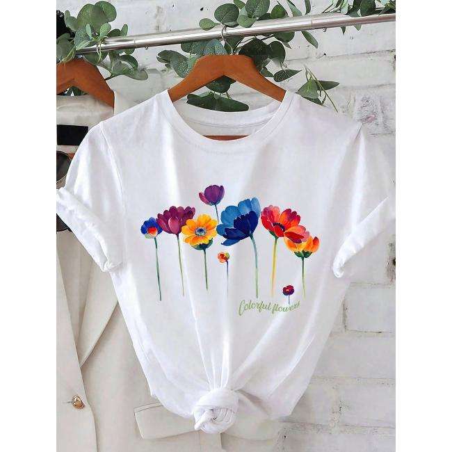 T-shirts d'été en coton à imprimé géométrique élégant et mignon pour femmes et enfants - Hauts doux, légers, respirants et à séchage rapide pour les sorties de jeu