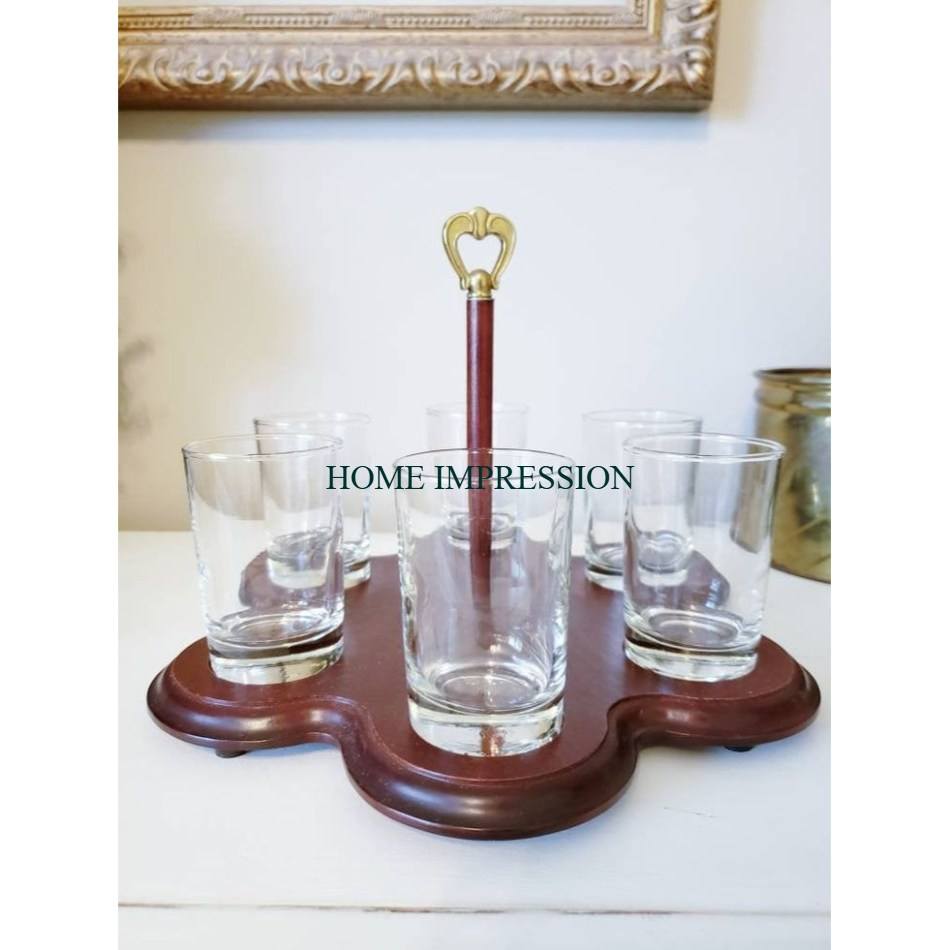 Support de verre de barre de conception élégante plateau de verre à liqueur en bois de qualité supérieure support de verre de jeu à boire avec support de stockage de produit de vente