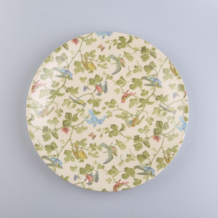 Assiette de service en mélamine plastique de 7,5 pouces avec motif végétal moderne, jaune, qualité alimentaire