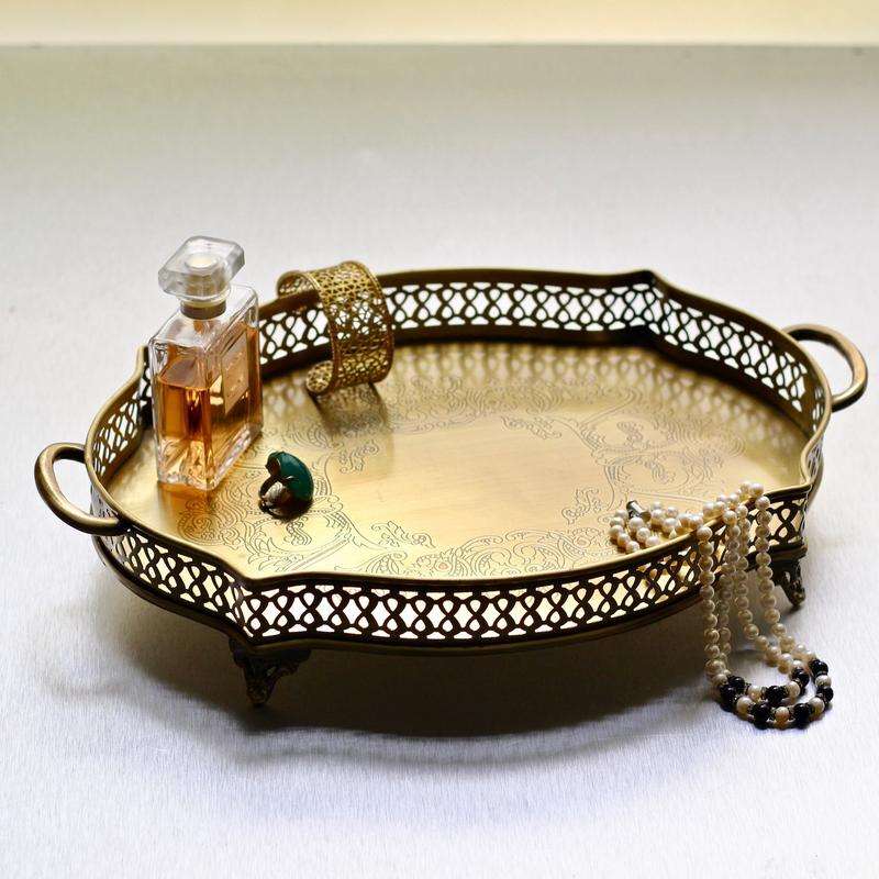 Plateaux de service au Design élégant pour ustensiles de cuisine, vaisselle, plat de service de nourriture d'hôtel, plateaux de service de café en métal moderne plaqué or
