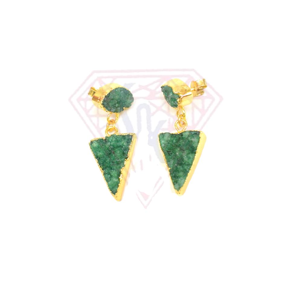 Boucles d'oreilles élégantes en pierres précieuses Druzy, forme triangulaire et marquise