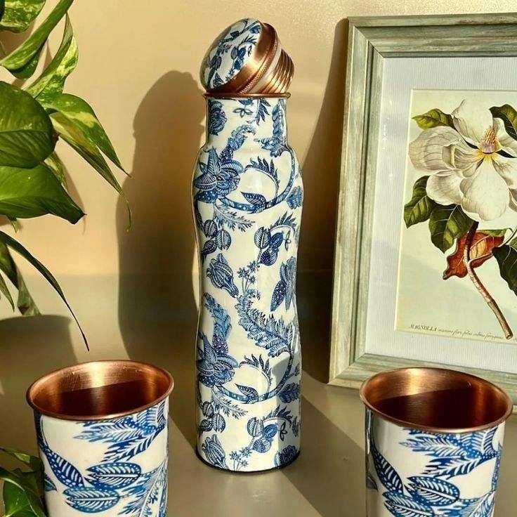Bouteille d'eau élégante en cuivre pur, faite à la main, 32 oz, avec un design élégant pour la maison et le bureau