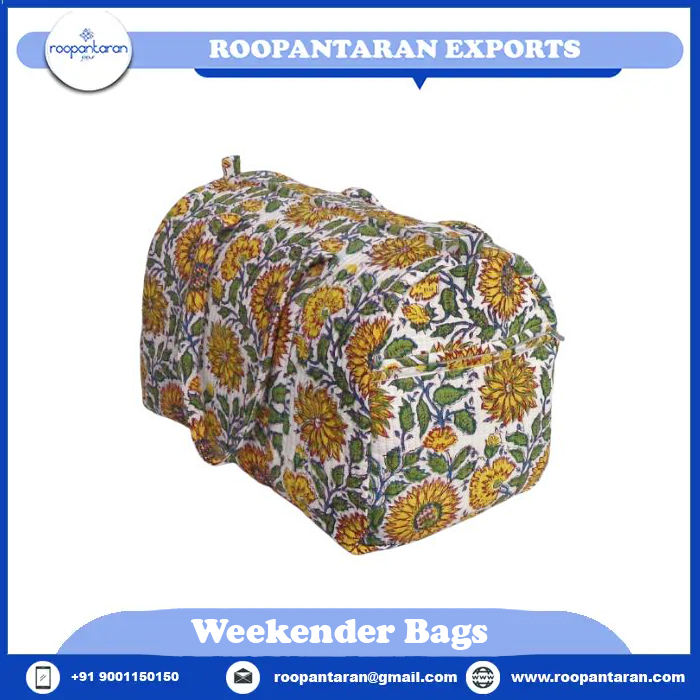 Stylish Eco-Friendly Weekender Duffle Bag Soft Cotton Canvas with Hand Block Print Zipper Closure for Every Traveller