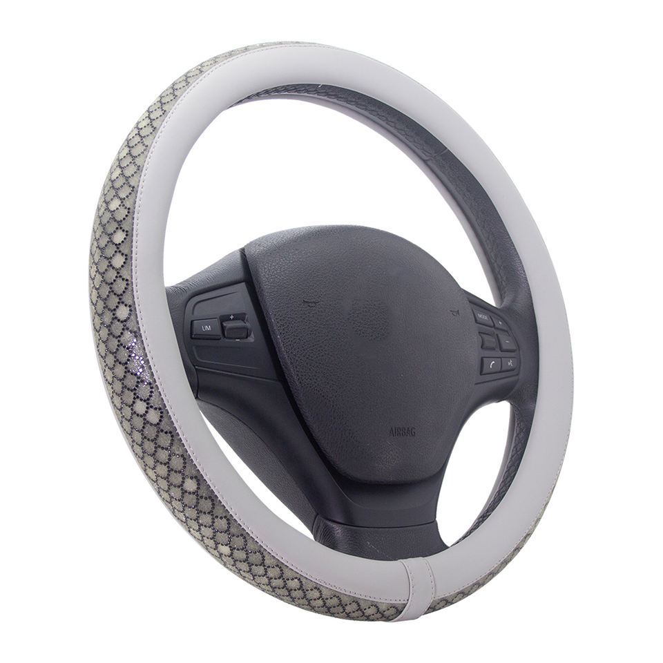 Housse de volant élégante à motif écailles de poisson entièrement ornée de strass, ajustement universel, douce et confortable, décoration de voiture