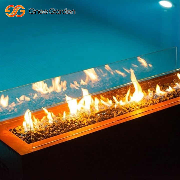 Cheminée extérieure Corten fonctionnelle moderne et élégante avec garde-vent en verre pour le chauffage extérieur
