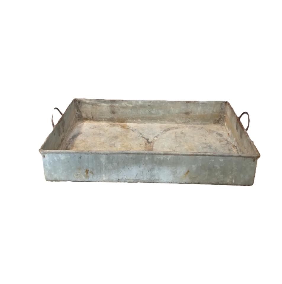 Plateau de service élégant en métal galvanisé avec poignées, plateau rustique en fer de haute qualité pour bar et desserts, idéal pour la maison et les restaurants
