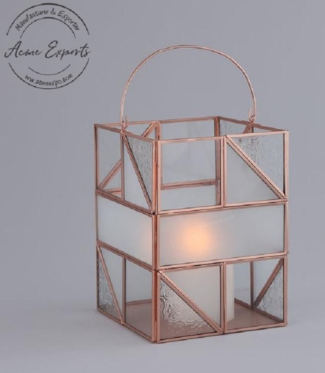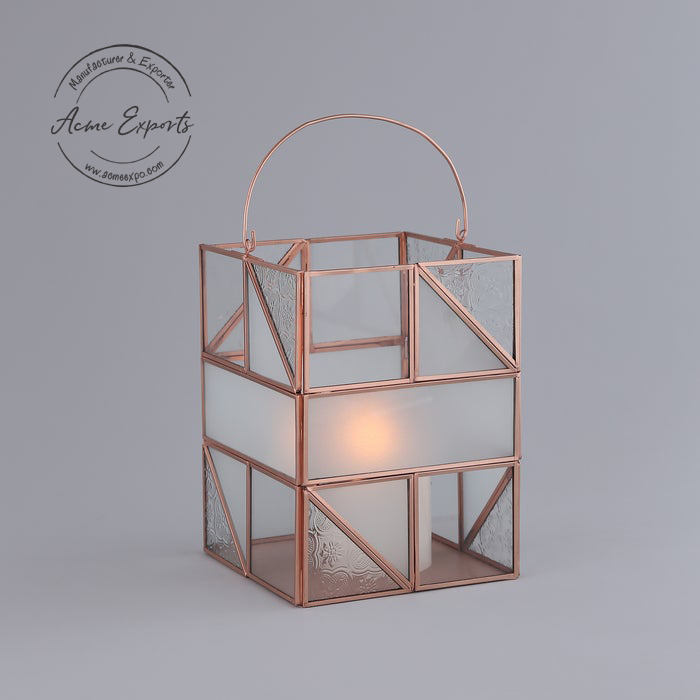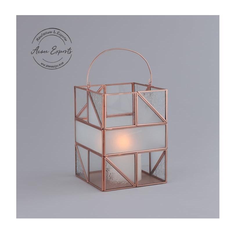 Lanterne en verre géométrique élégante avec cadre en métal pour la décoration intérieure et extérieure, parfaite pour l'éclairage des bougies et les cadeaux