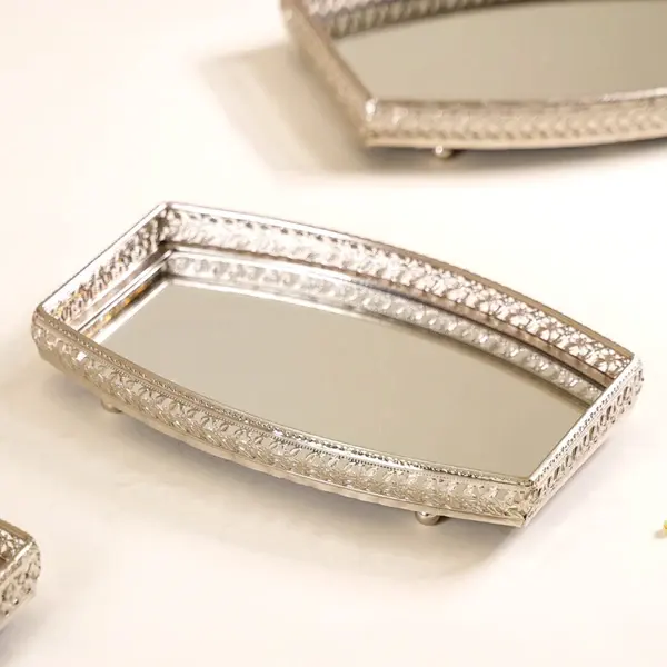 Plateau de service en métal géométrique élégant Poignées à découpes artistiques Prix raisonnable accessible pour la décoration intérieure moderne pour le salon