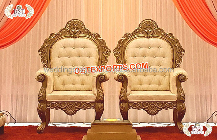 Stylish Gold Polished Bride & Groom Wedding ChairsProduct name