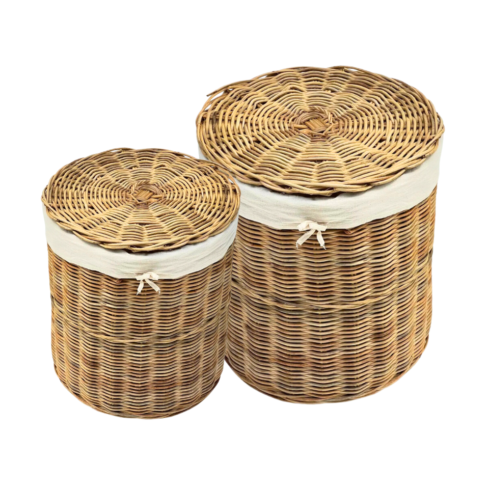PANIER EN ROTIN TISSÉ À LA MAIN élégant avec couvercle et doublure en coton idéal pour organiser et ranger la lessive Organisateur Décoration intérieure