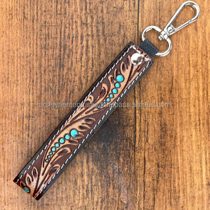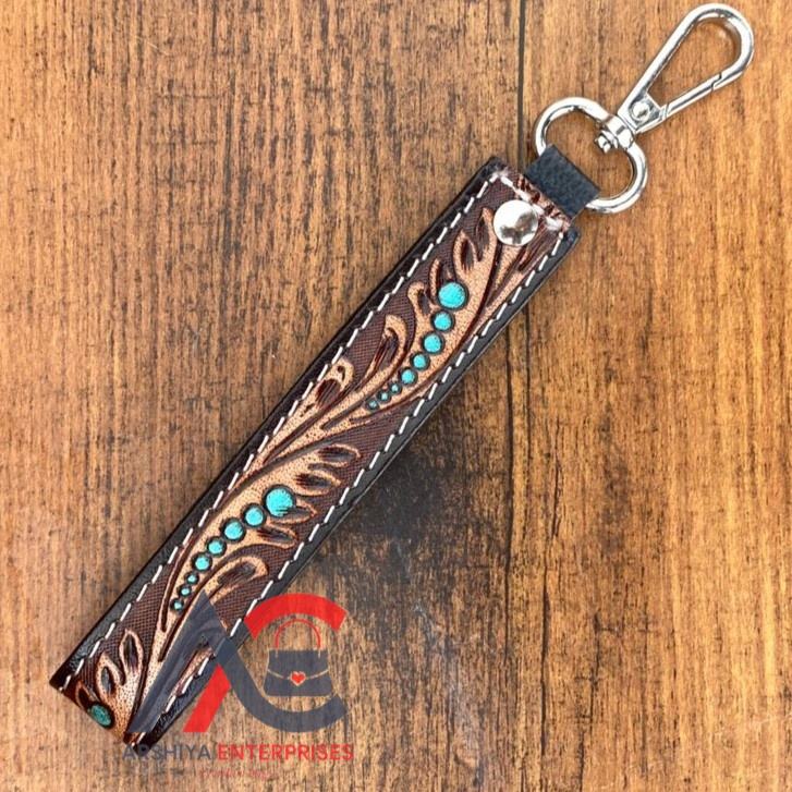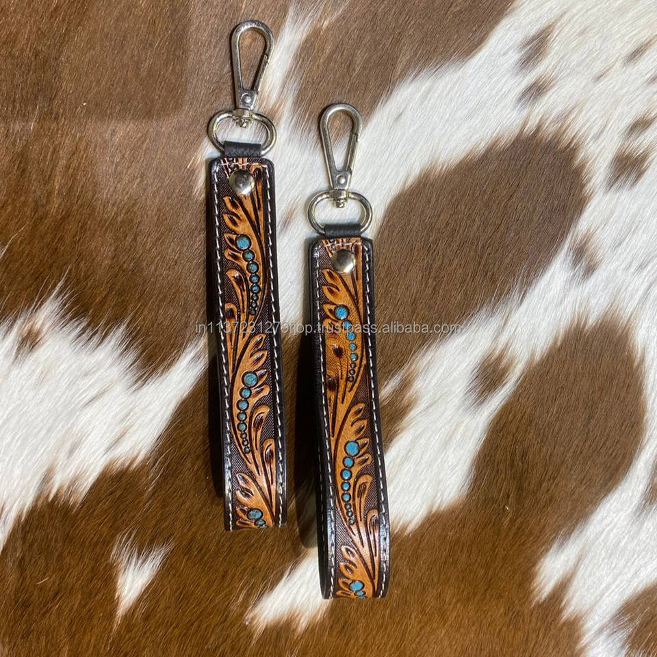 Porte-clés en cuir élégant sculpté à la main Porte-clés en cuir imprimé floral en relief Accessoires en cuir outillé Porte-clés mignons