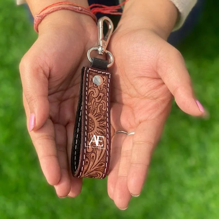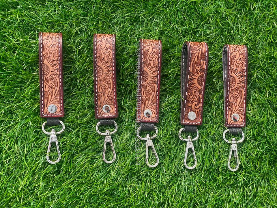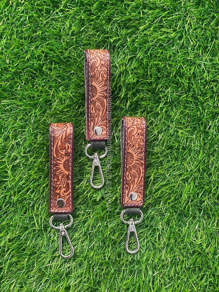 Stylish Hand Carved Tooled Leather Key Chains Embossed Floral Print Leather Key Rings Tooled Leather Accessories Cute Key Chains
