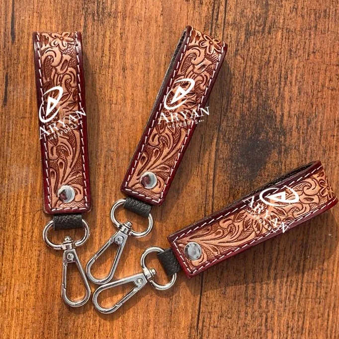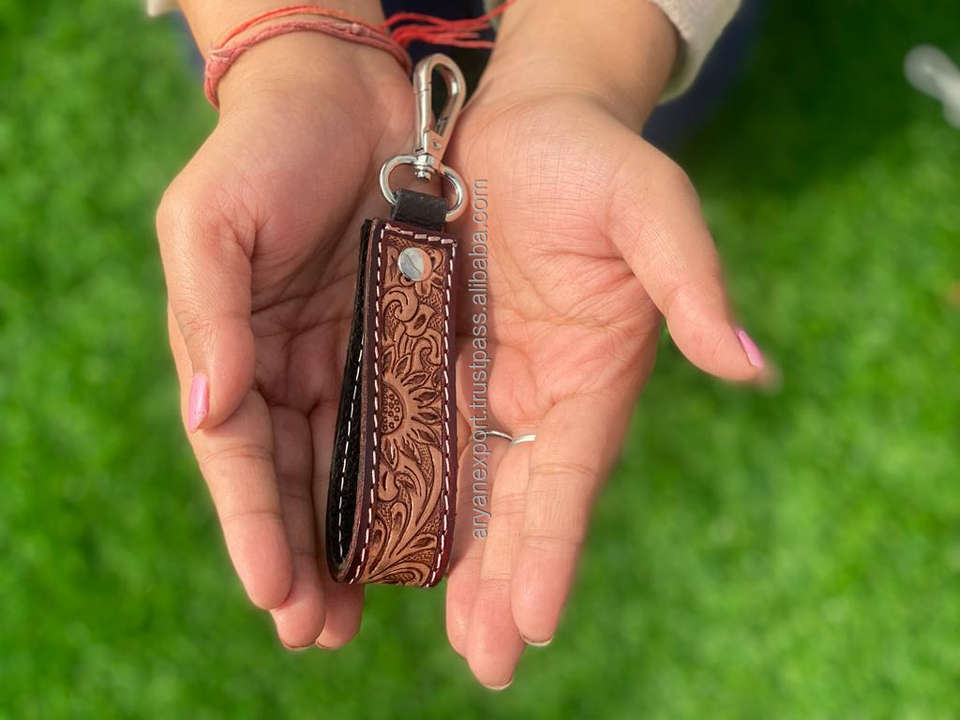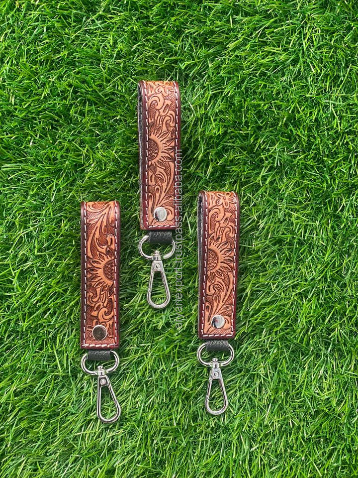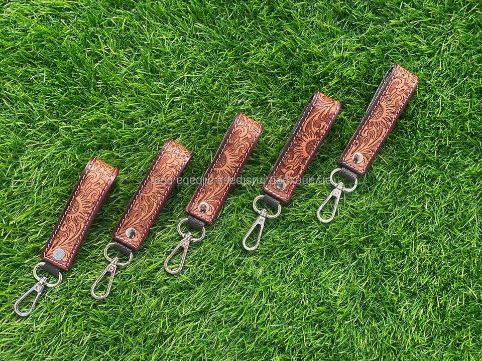 Porte-clés en cuir élégant sculpté à la main Porte-clés en cuir imprimé floral en relief Accessoires en cuir outillé Porte-clés mignons