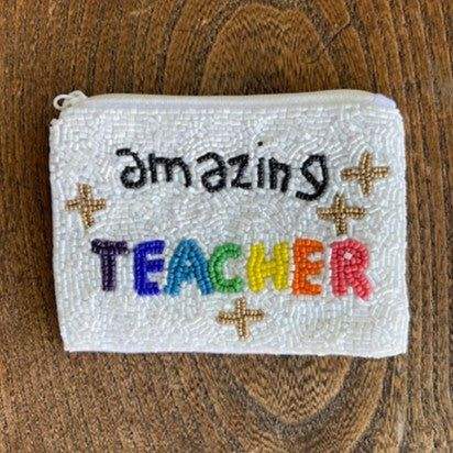 Élégant artisanat GIG'EM Design perlé broderie Preppy Mini sac à fermeture éclair élégant et fantaisie traditionnel par Hiba Enterprises
