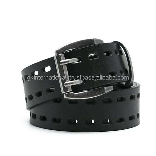 Stylish Handmade Cowhide Men's Leather Casual Belt With Heavy Duty Double Pin Matt Silver Brass Buckle Dress Belt