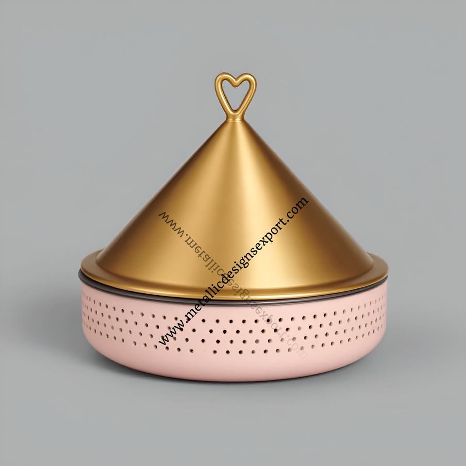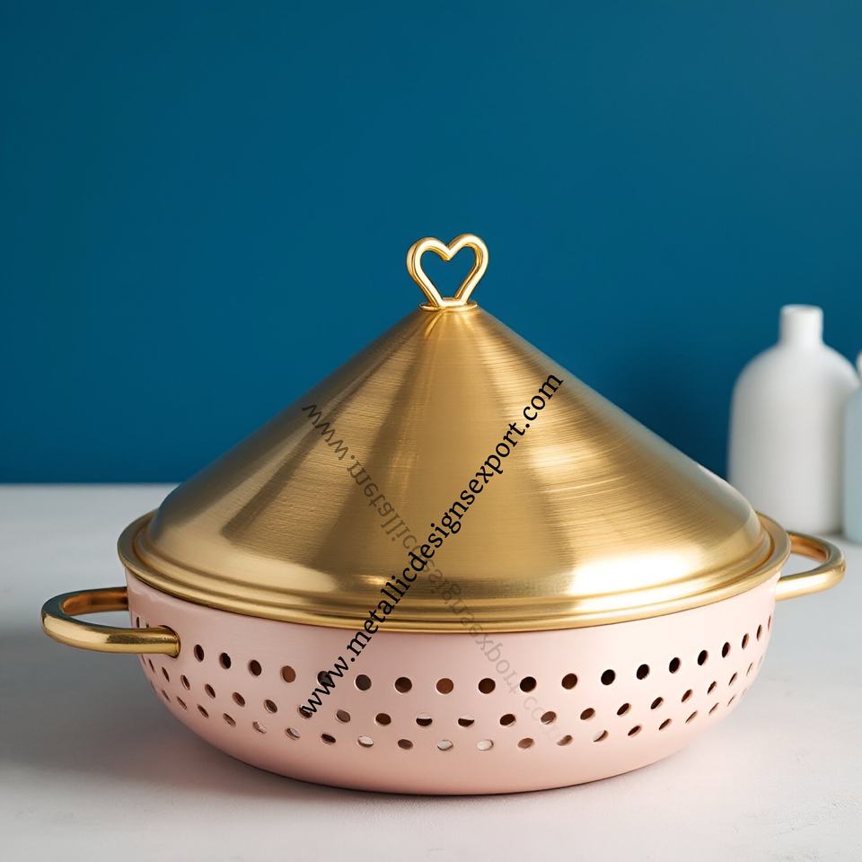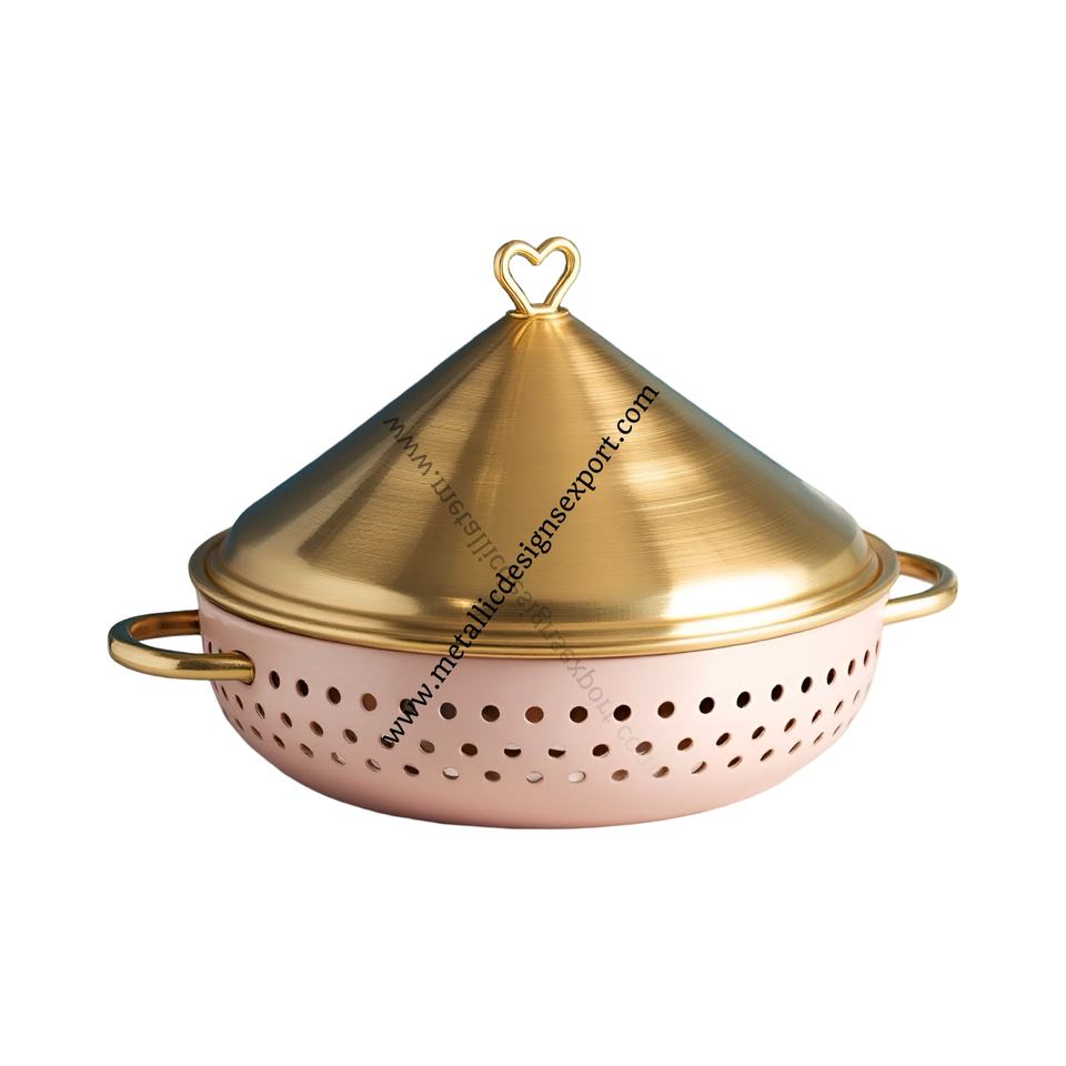 Plat de service et casserole élégant à couvercle doré à poignée en forme de cœur avec couvercle Base rose perforée Poignées latérales doubles Plats à friction Pots