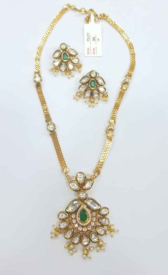 Collier élégant à pendentif Kundan avec pierres vertes et boucles d'oreilles assorties Idéal pour les festivals, les mariages et les fonctions spéciales
