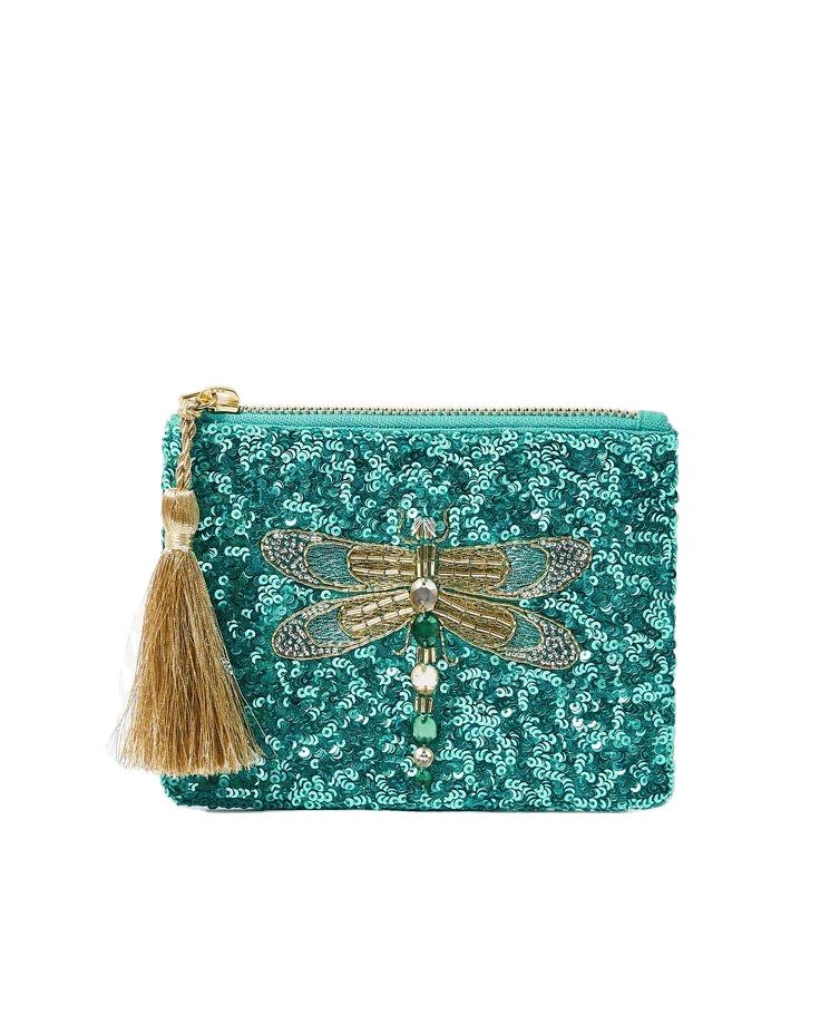 Élégant dernier mini sac à fermeture éclair perlé de fleurs vertes brodées avec un travail manuel à la mode et une finition de qualité supérieure de l'Inde