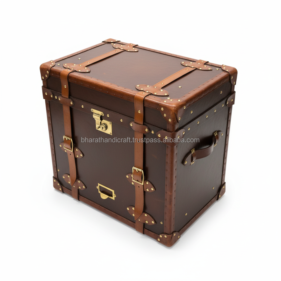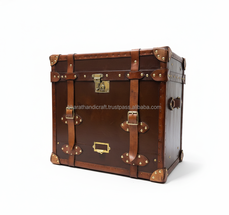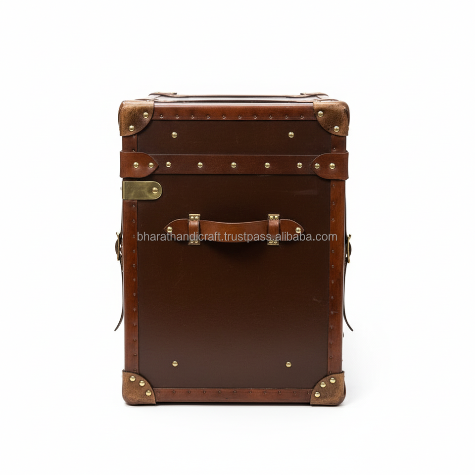 Table d'appoint élégante en cuir avec finition en cuir de qualité supérieure, construction robuste, rangement spacieux et design intemporel