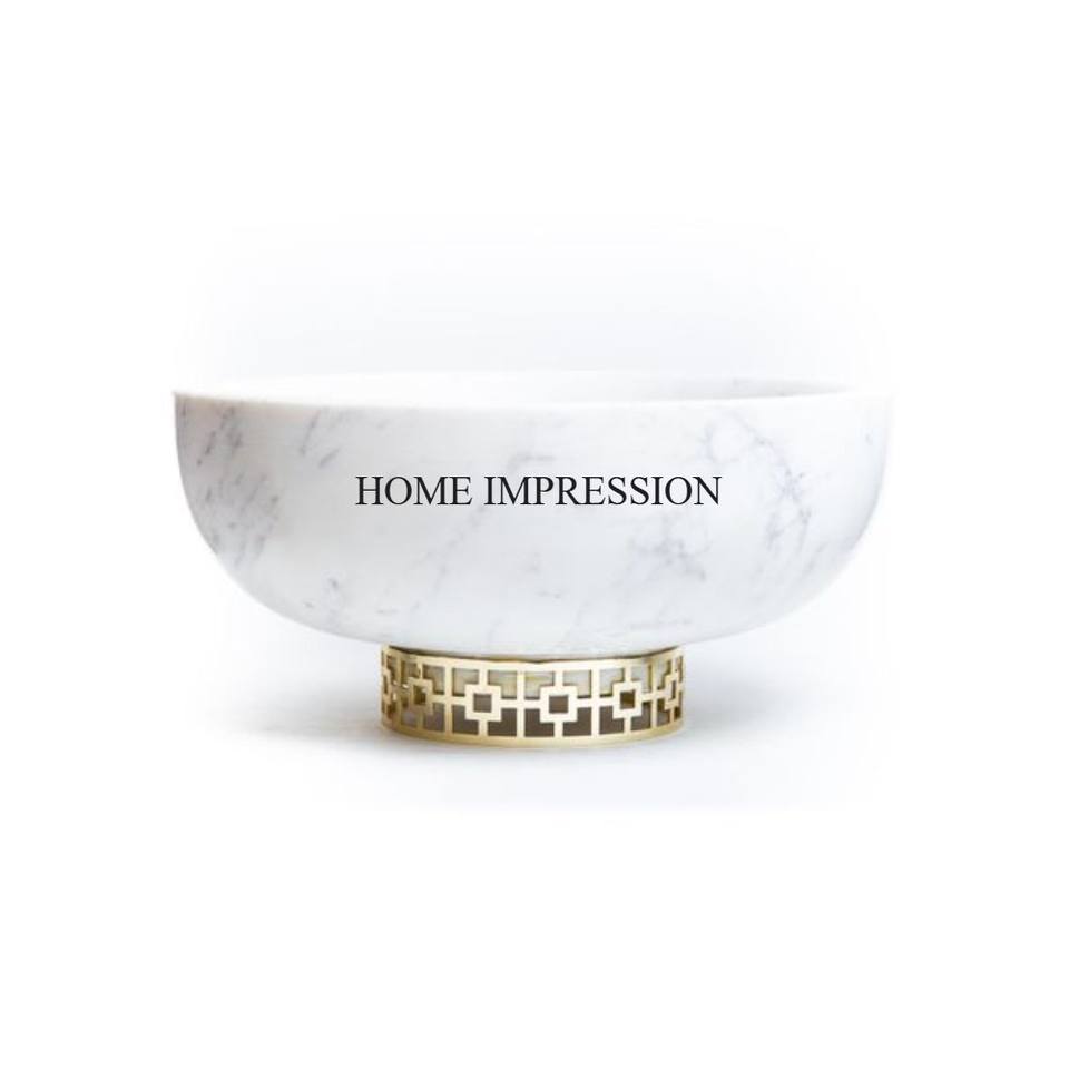 Bol en métal robuste plaqué or de haute qualité à l'aspect élégant avec base en marbre blanc de forme carrée pour aliments et autres articles