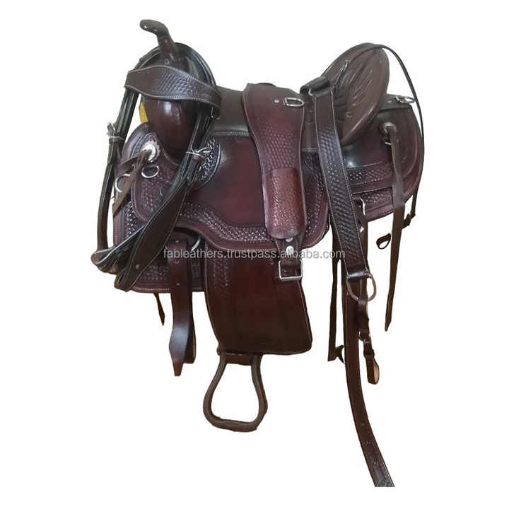 Selle d'équitation western de plaisir en cuir véritable fait main