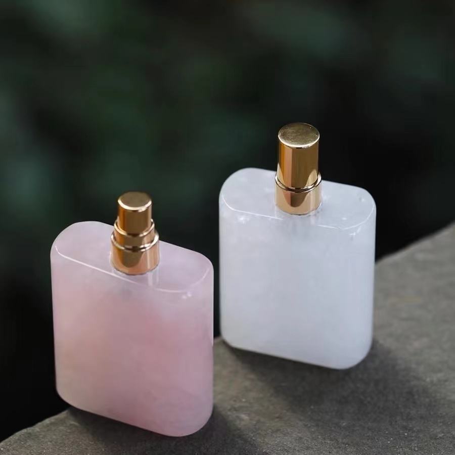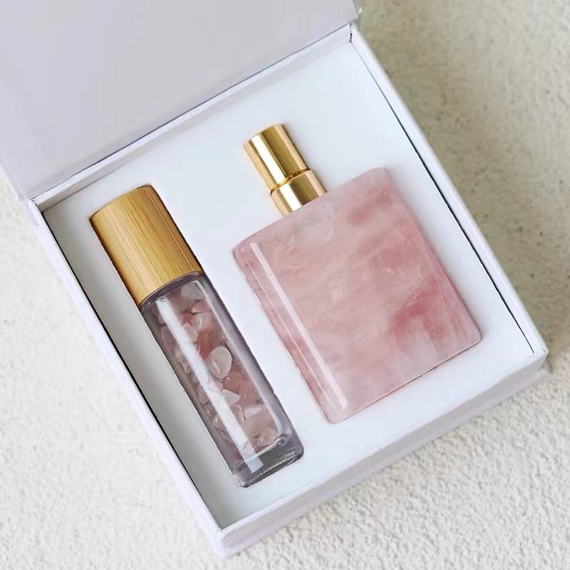 Bouteilles de parfum artisanales en cristal brut de conception d'amour élégant Pierres précieuses naturelles pour aromathérapie Articles de toilette rouges pour la décoration de la maison