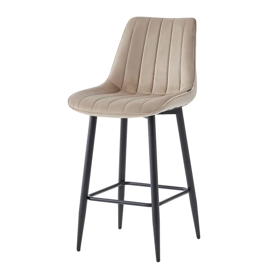 Stylish Luxury Counter Height Taupe Velvet bar Stool Chair with Metal Feet