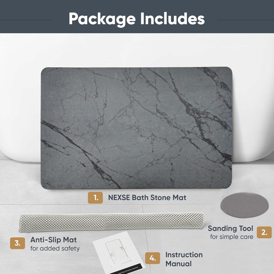 Tapis de bain en pierre au design élégant en marbre, motif uni qui garde votre salle de bain impeccable en permanence