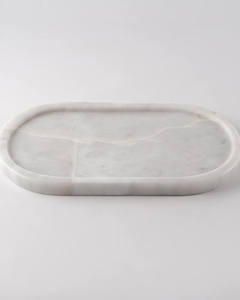 Plateau en marbre élégant conçu pour organiser les bijoux, les cosmétiques, les bougies et les accessoires décoratifs