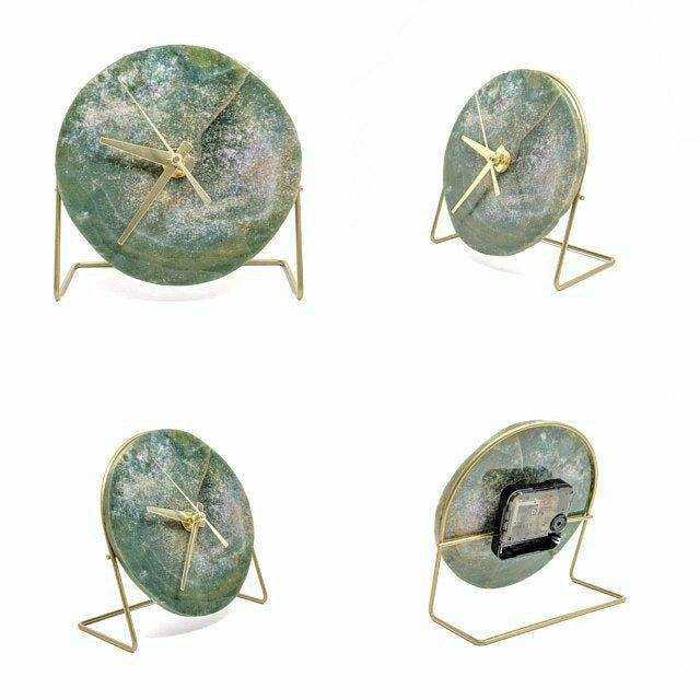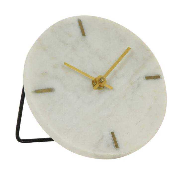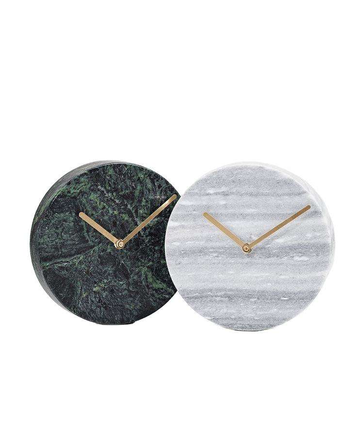 Horloge élégante en marbre, horloge en forme de diamant avec chiffres romains, horloge décorative de luxe avec accents dorés, horloge de bureau moderne