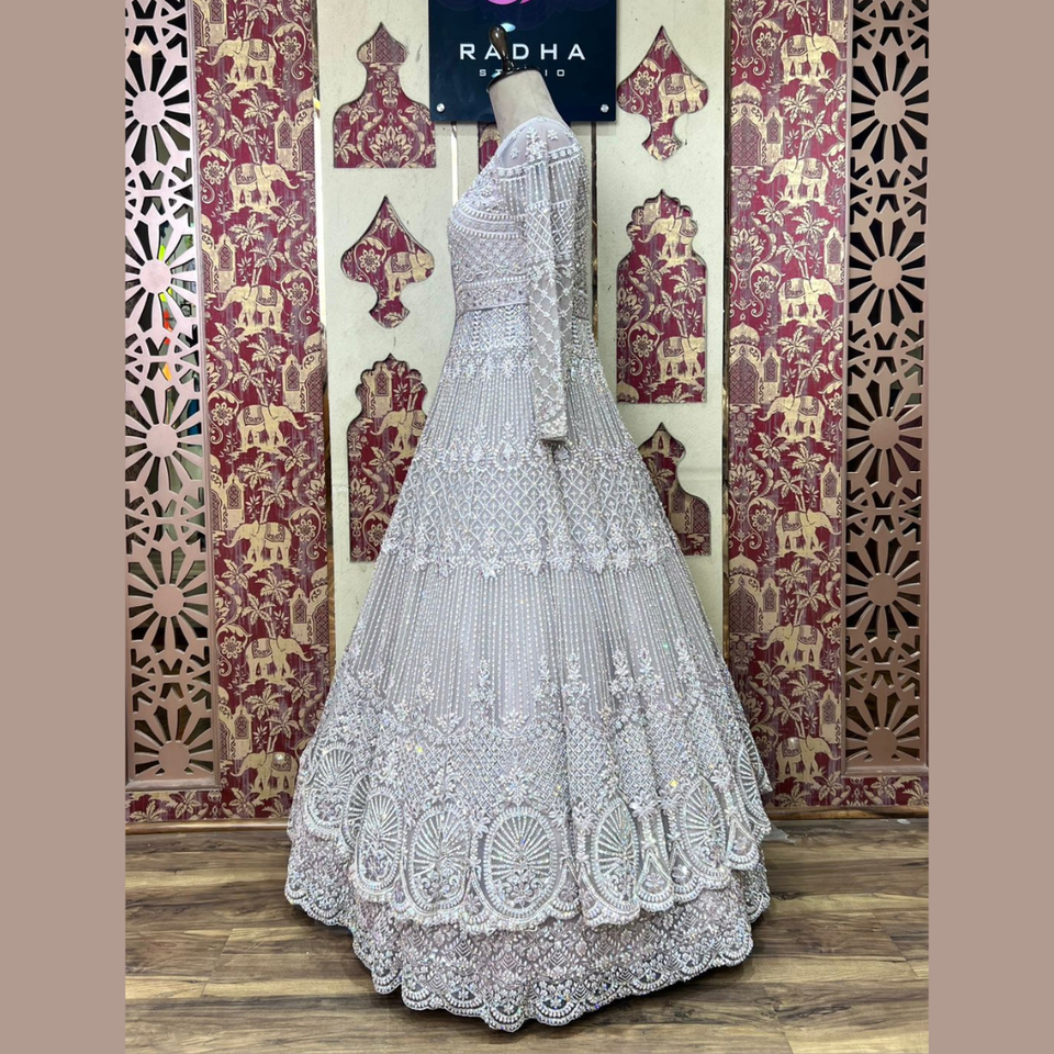 Stylish Mauve Indo Western Lehenga with Handcrafted Dori Work & Diamond Highlights For a Perfect for All Occasions From india