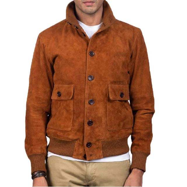 Veste en cuir de mouton élégant pour hommes avec fermeture à glissière à col haut côtes tricotées doublure en polyester deux à l'intérieur de quatre poches extérieures