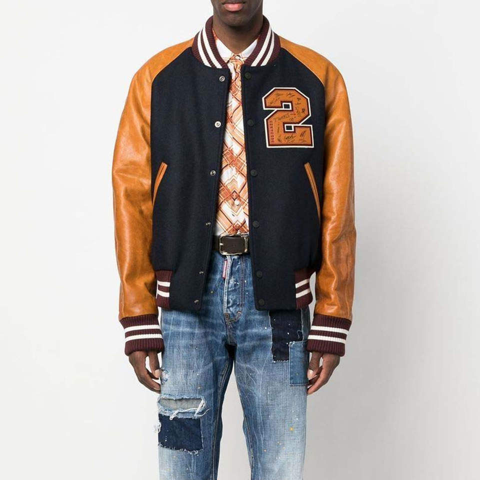 Blouson de baseball élégant pour homme, personnalisé, collection Printemps 2026, design patchwork Letterman Varsity, col montant, confortable pour l'hiver