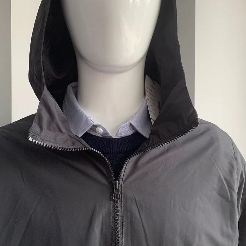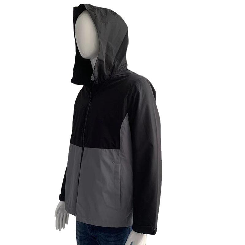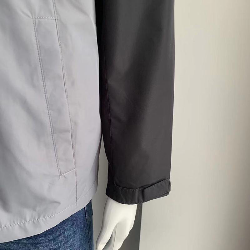 Veste coupe-vent à capuche avec logo de marque personnalisé pour hommes élégants pour le printemps automne nouvelle couleur bloquant le tissu tricoté manteau décontracté solide
