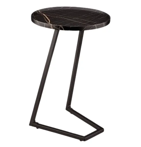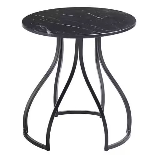 Table d'appoint élégante en métal noir avec plateau en marbre, forme ronde, pour chambre à coucher, salon, décoration, meubles