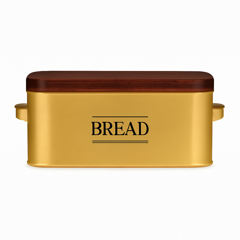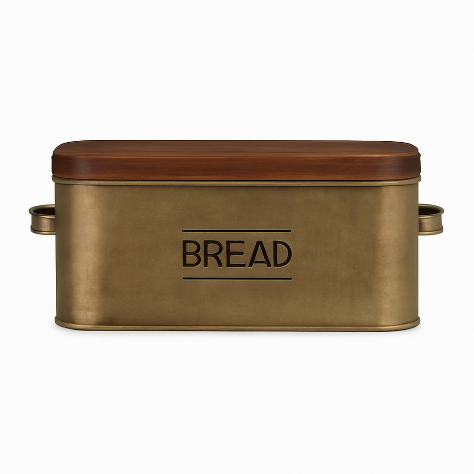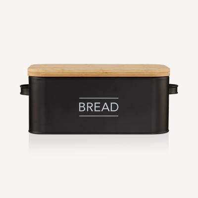 Boîte à pain élégante en métal avec couvercle en bois foncé Rangement de cuisine rustique pour les produits de boulangerie et la conception plus durable et plus spacieuse