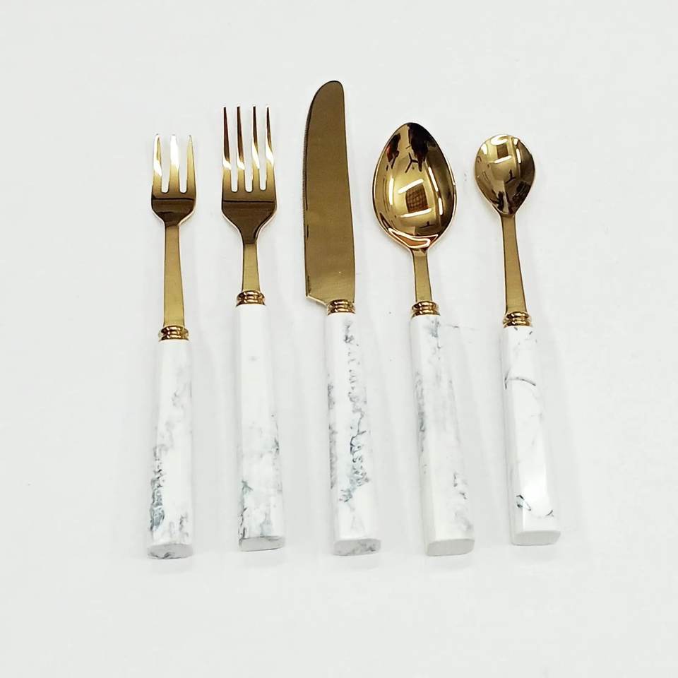 Stylish Metal Food Safe Flatware Set in White Enamel Handle Pvd Gold Coating for Home & Wedding Dinnerware Cutlery Sets