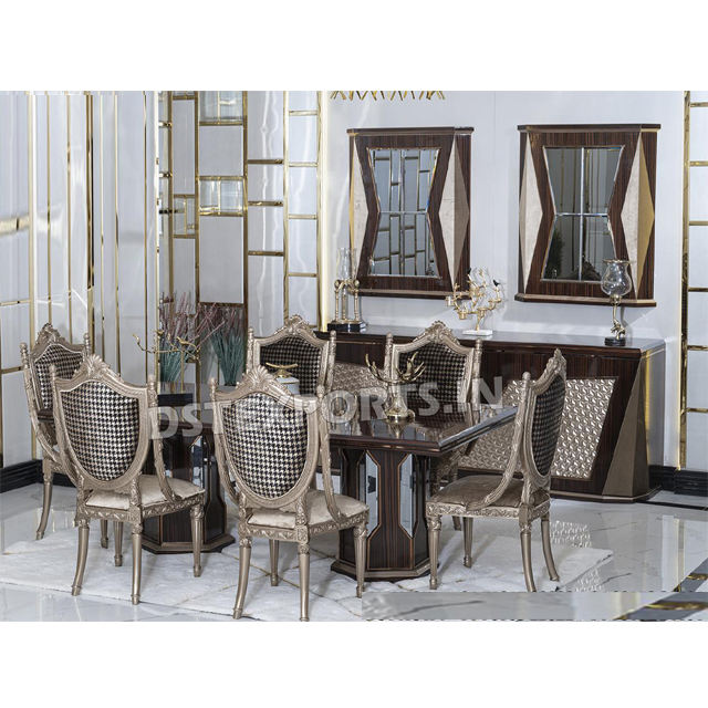Stylish Metallic Look Hand Carved Dining Table & ChairsProduct name
