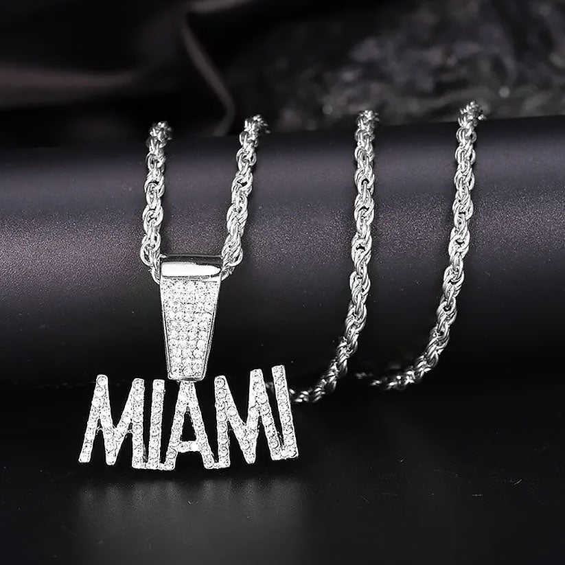 Collection de breloques à la mode avec pendentif en strass avec lettre Miami élégante