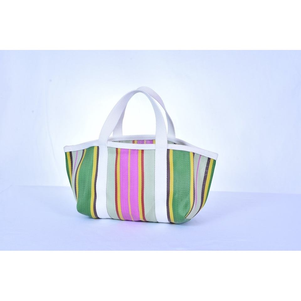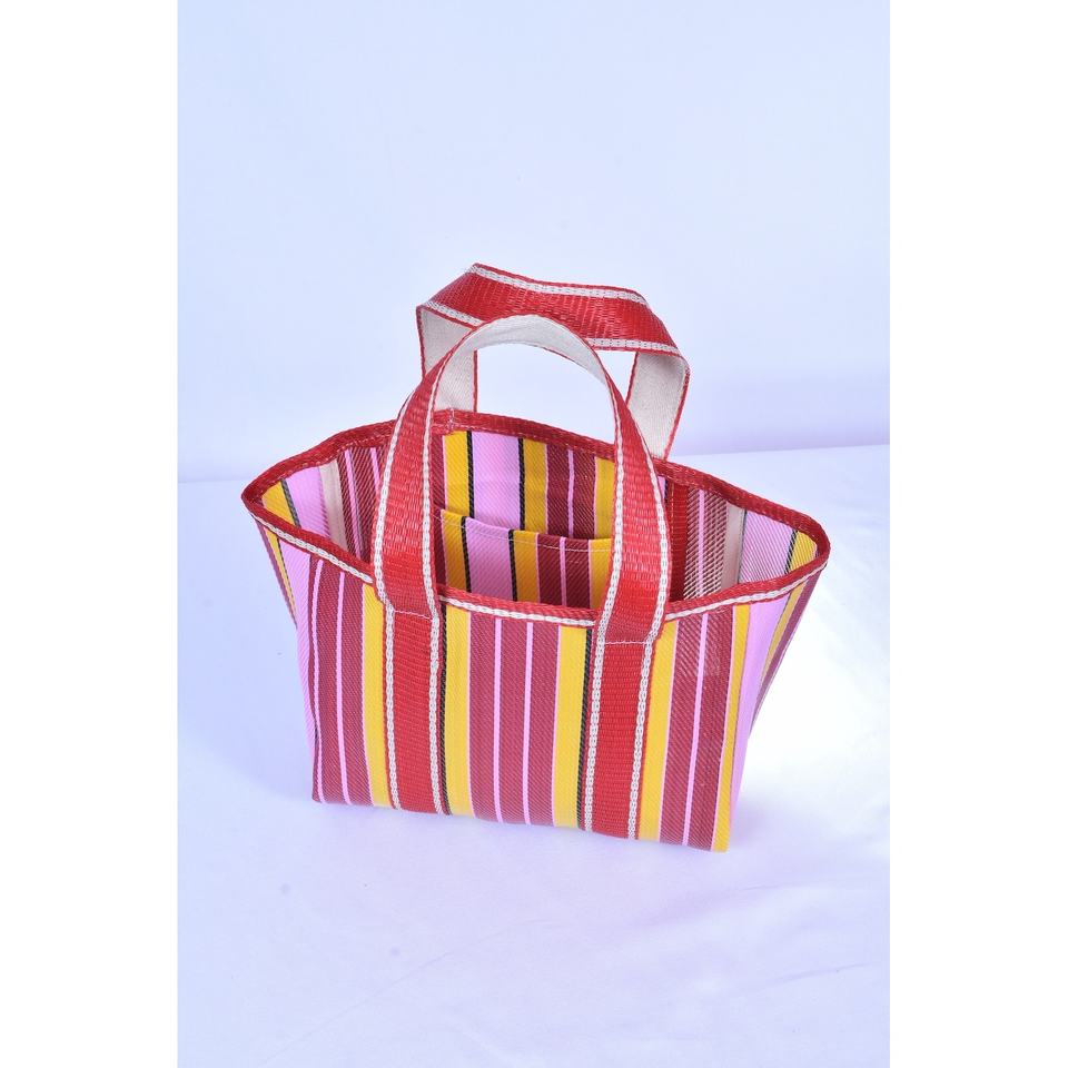 Mini sac fourre-tout durable pour dames, élégant, rayé, en nylon recyclé, logo personnalisé, ouverture sur le dessus, accessoire de shopping de mode durable