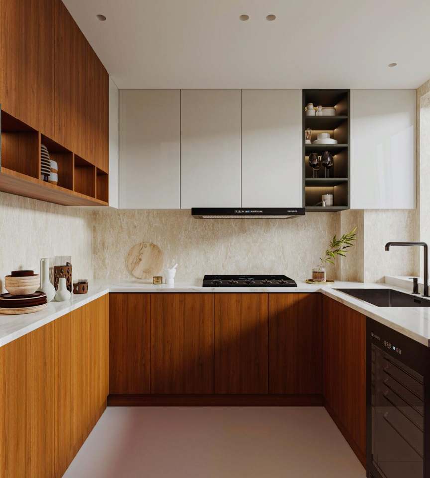 Armoires de cuisine en U minimalistes et élégantes pour une vie moderne avec des tailles personnalisables