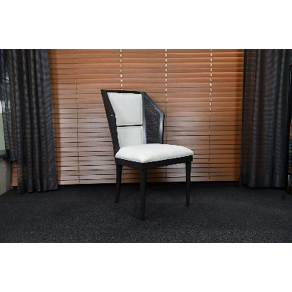 Stylish Modern Black Wooden Dining Chair with Cane Back and Comfortable Eco Friendly Upholstery for Hotels and Homes