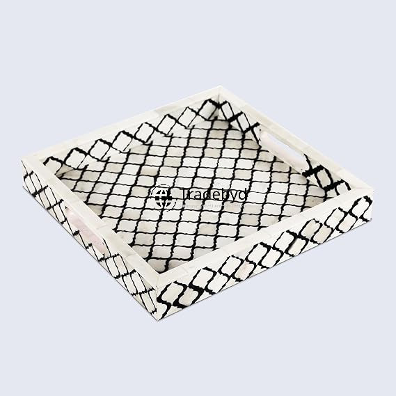 Plateau élégant et moderne en os incrusté, table basse décorative mobile de qualité supérieure, fabriquée à la main par Tradebyd