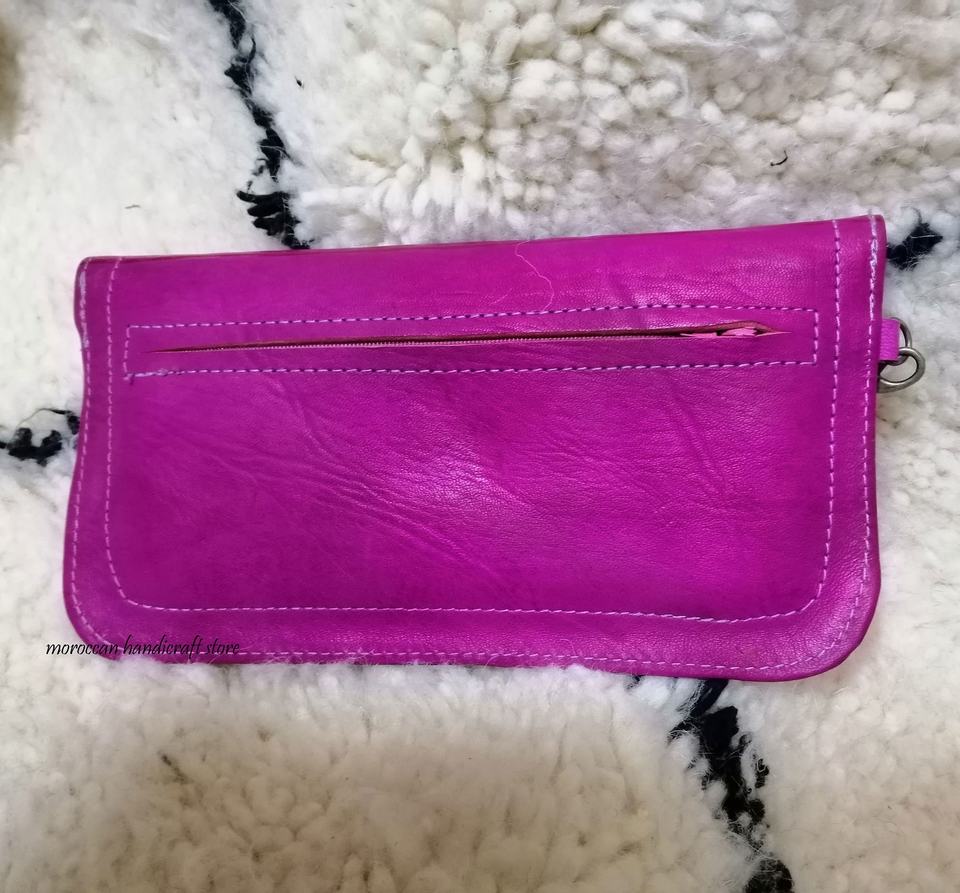Portefeuille long élégant pour femme en cuir, style marocain, pochette enveloppe, anti-vol, motif géométrique traditionnel avec lettres