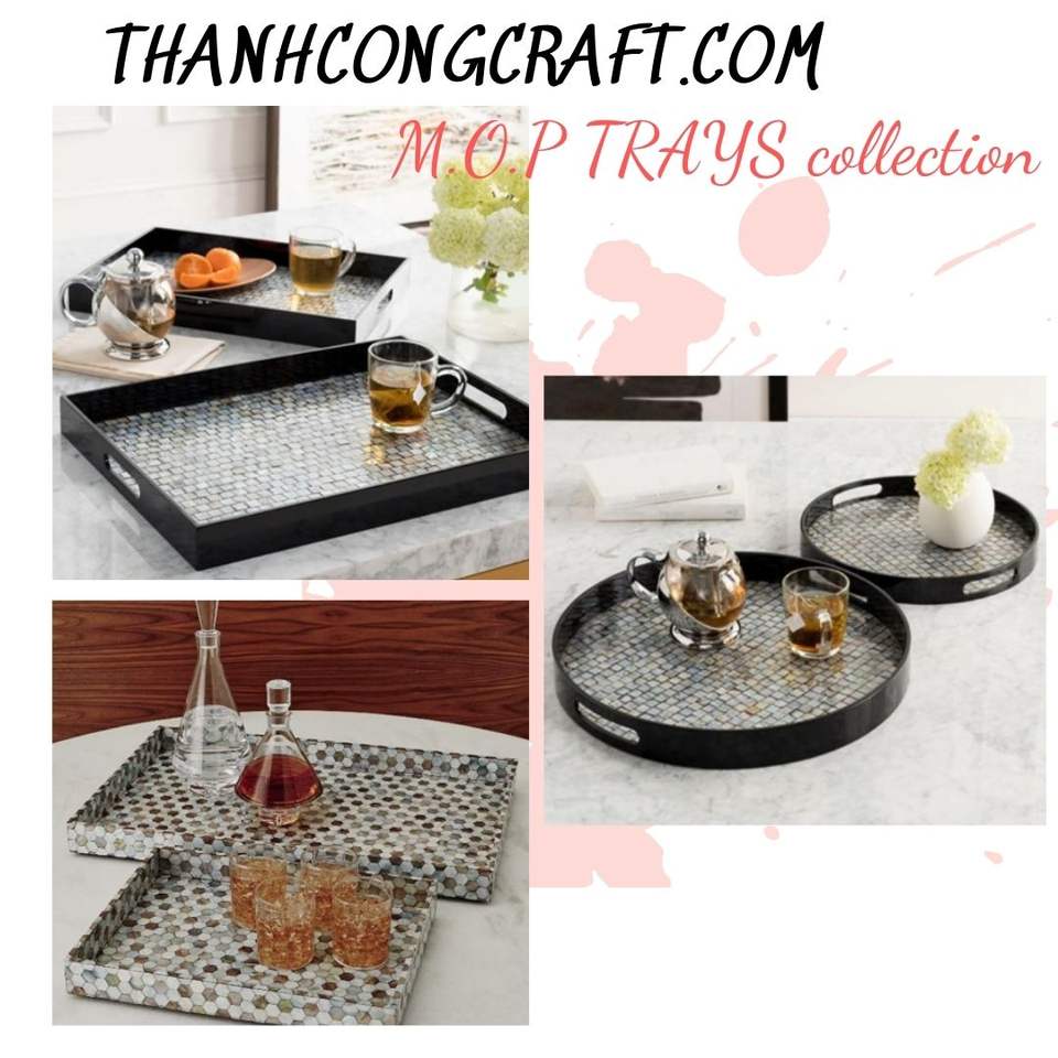 Plateau de service élégant en perles, mère de la perle avec couvercle en acrylique, prix bas