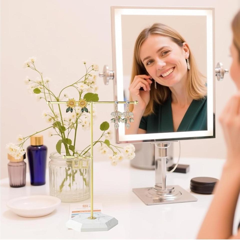 Présentoir à Bijoux Multi-bras Élégant avec Crochets Étagés, Support Stable pour Bracelets et Boucles d'Oreilles, Présentoir de Coiffeuse Intelligent et Gain de Place