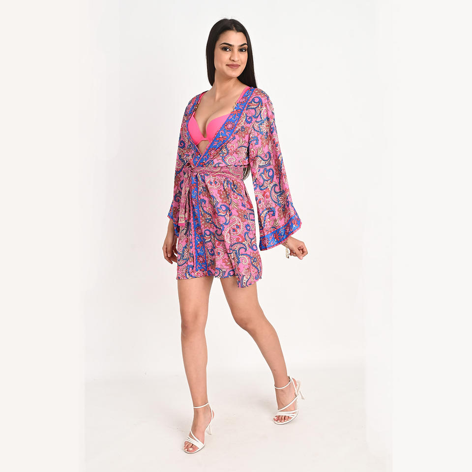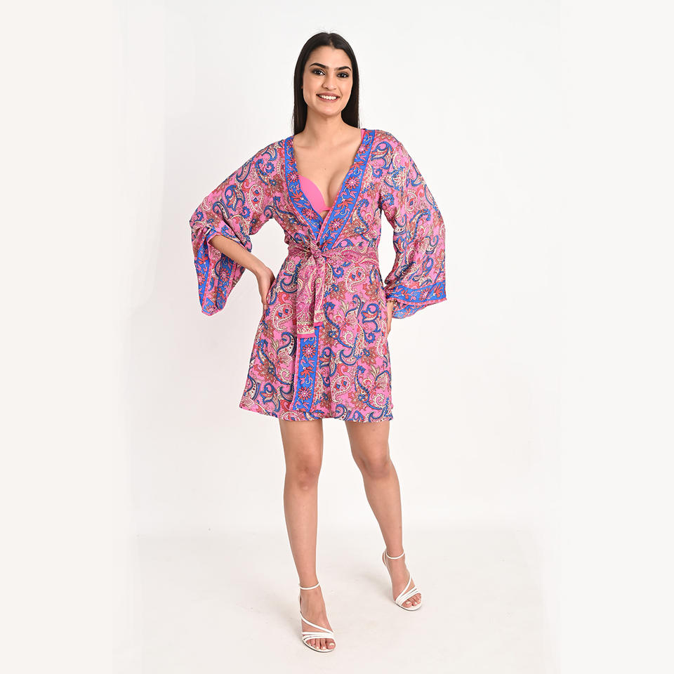 Robe de soirée élégante multicolore à la plage Sari Robe Bikini Cover up Esey à porter Robe portefeuille